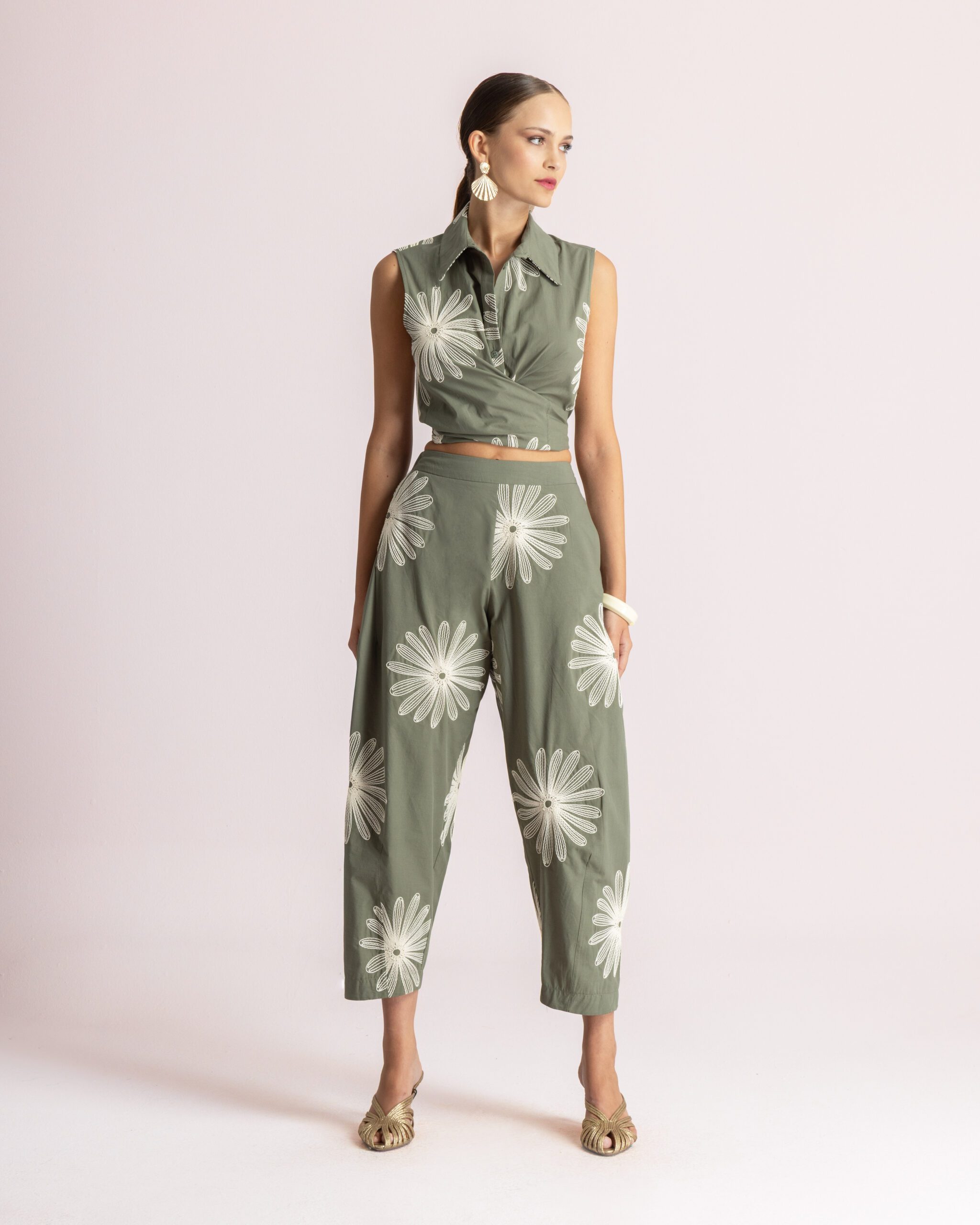 Daisy Embroidered Pants – Khaki