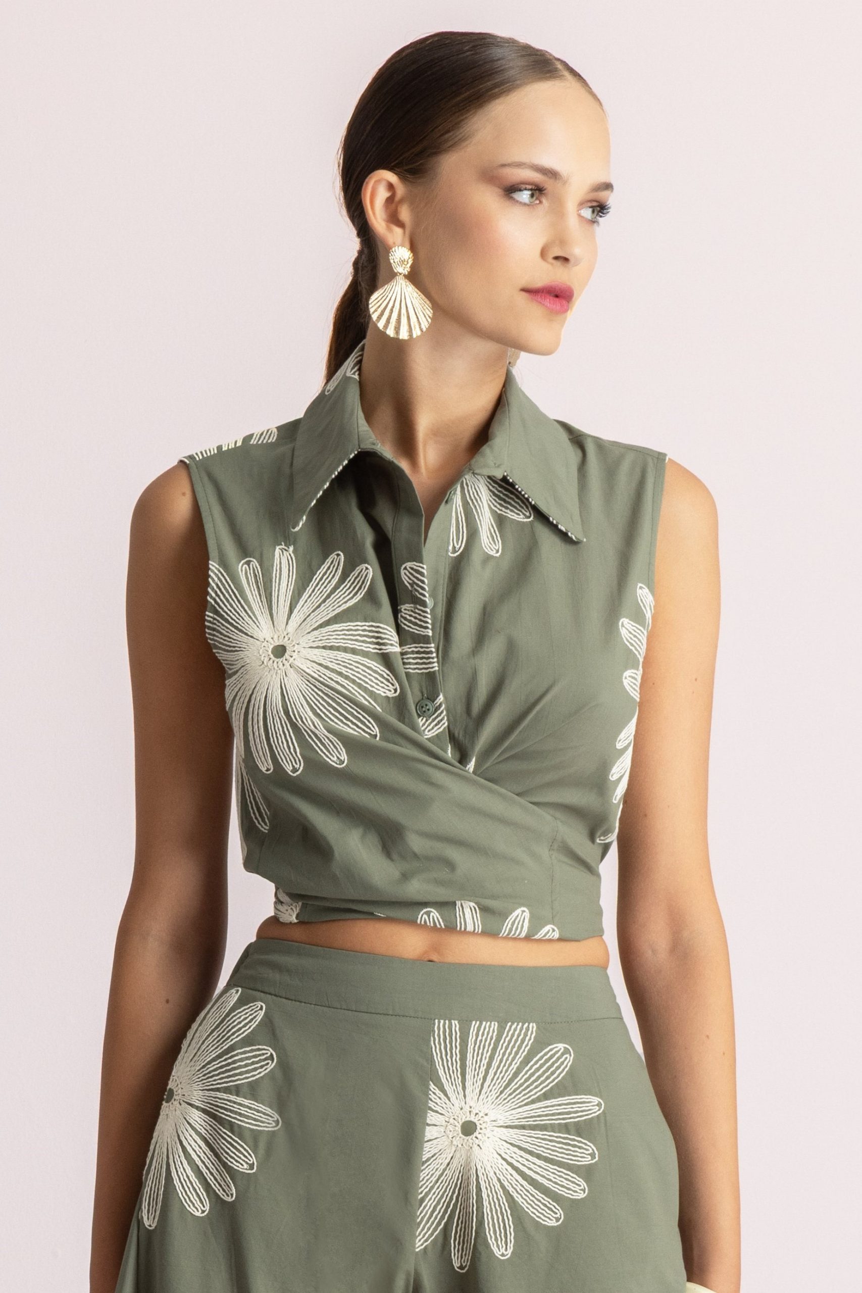Daisy Embroidered Shirt – Khaki