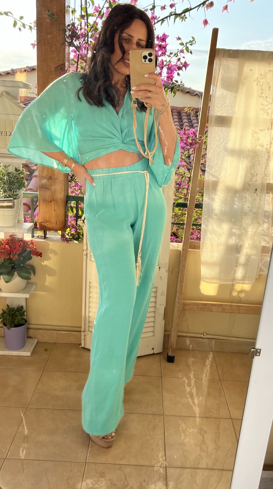 • Διαθέτει ζωνάκι χρυσό πλεκτό