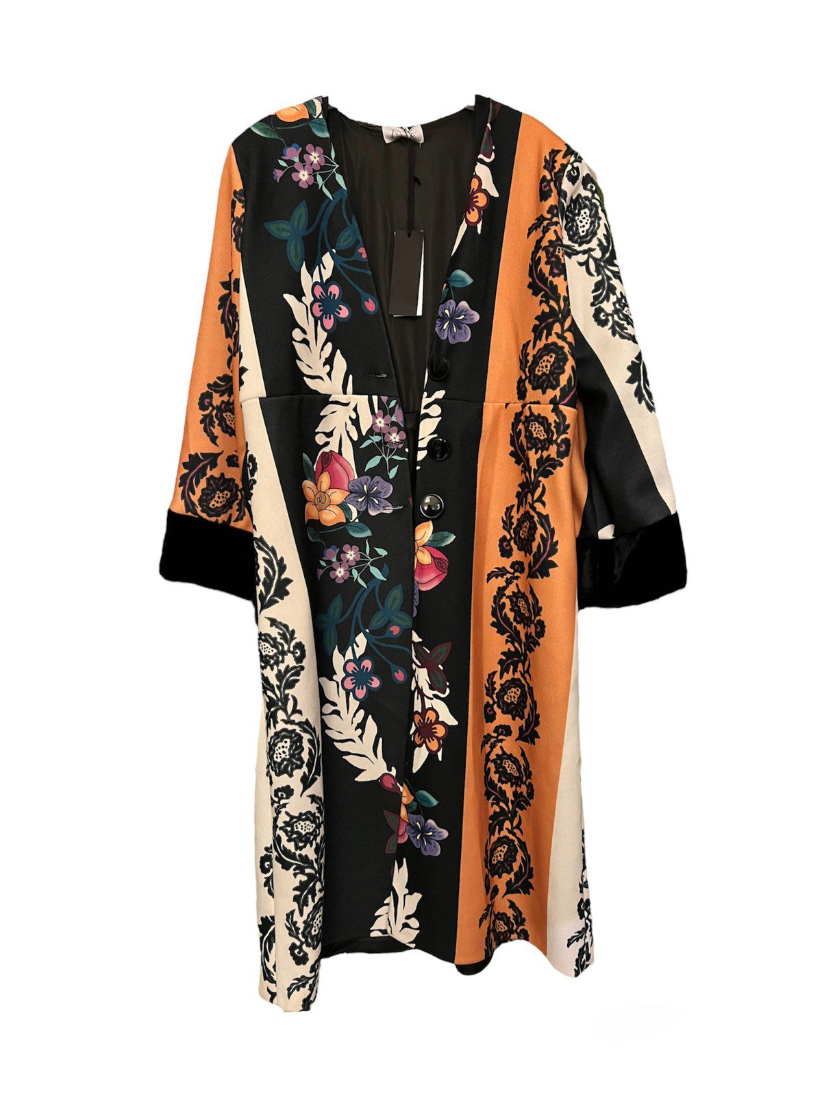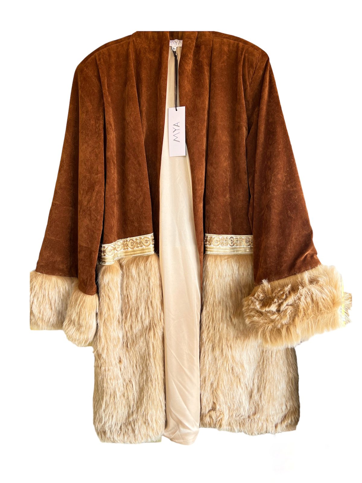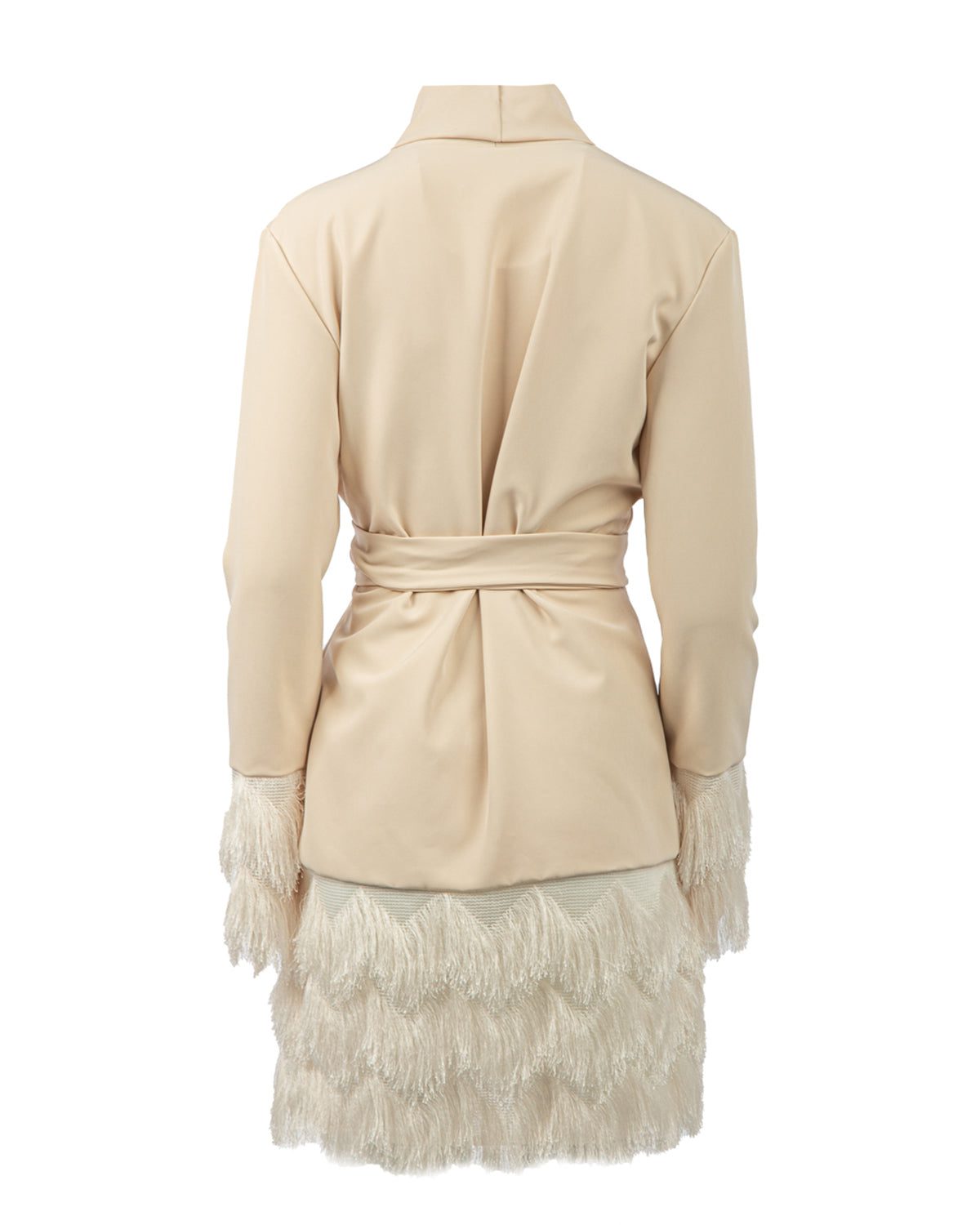 - Κλείνει με ζώνη από το ίδιο ύφασμα σταυρωτά