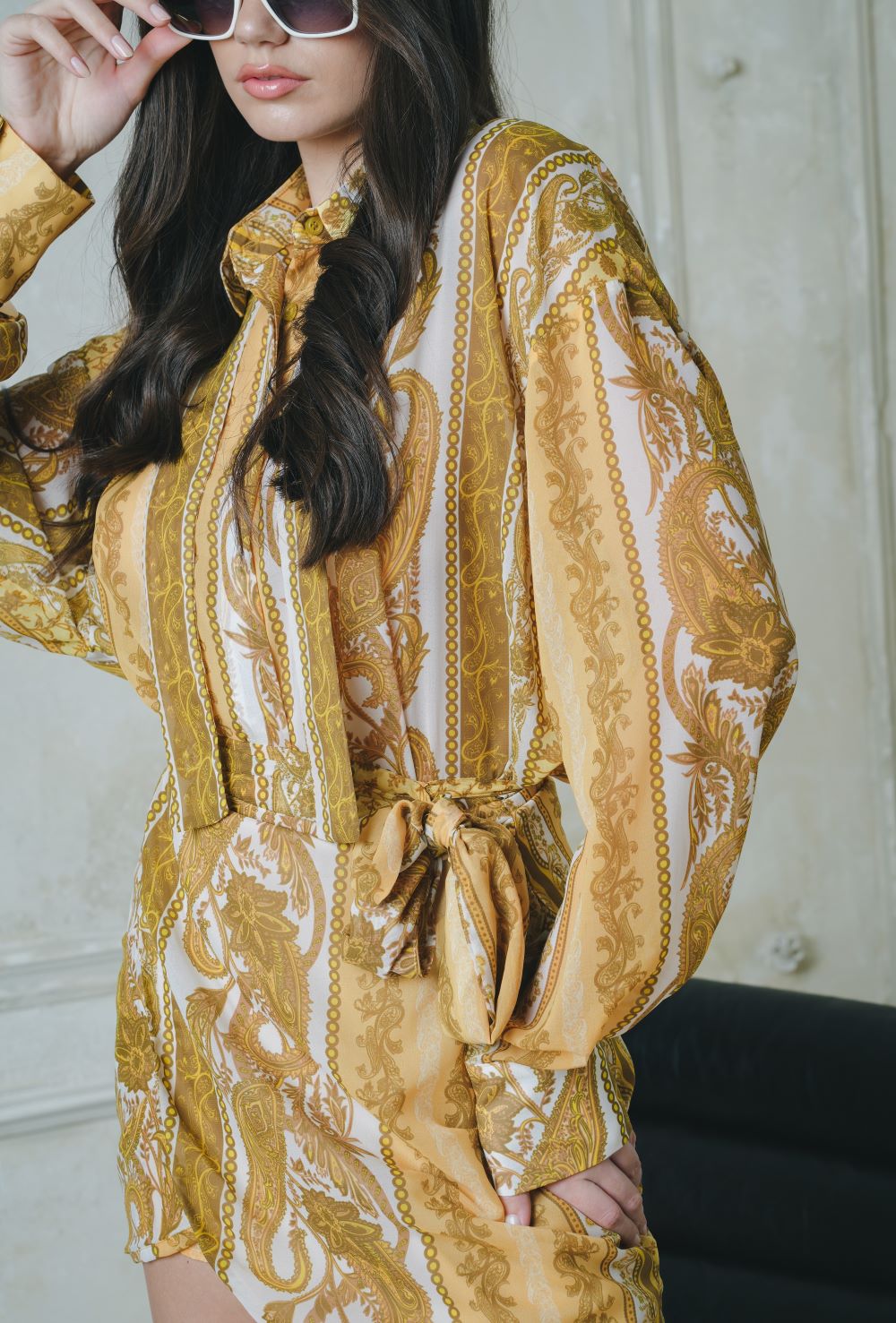 - Έχει ζώνη φουλάρι από το ίδιο ύφασμα