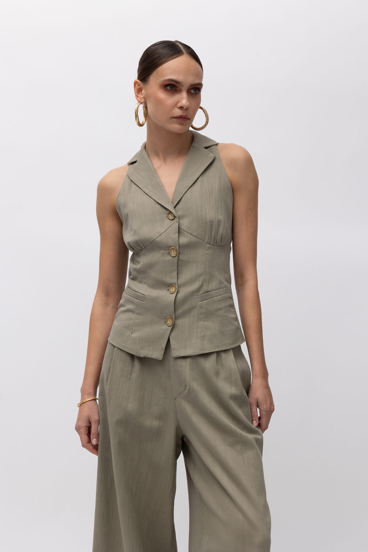 • Έχει ζώνη φουλάρι από το ίδιο ύφασμα